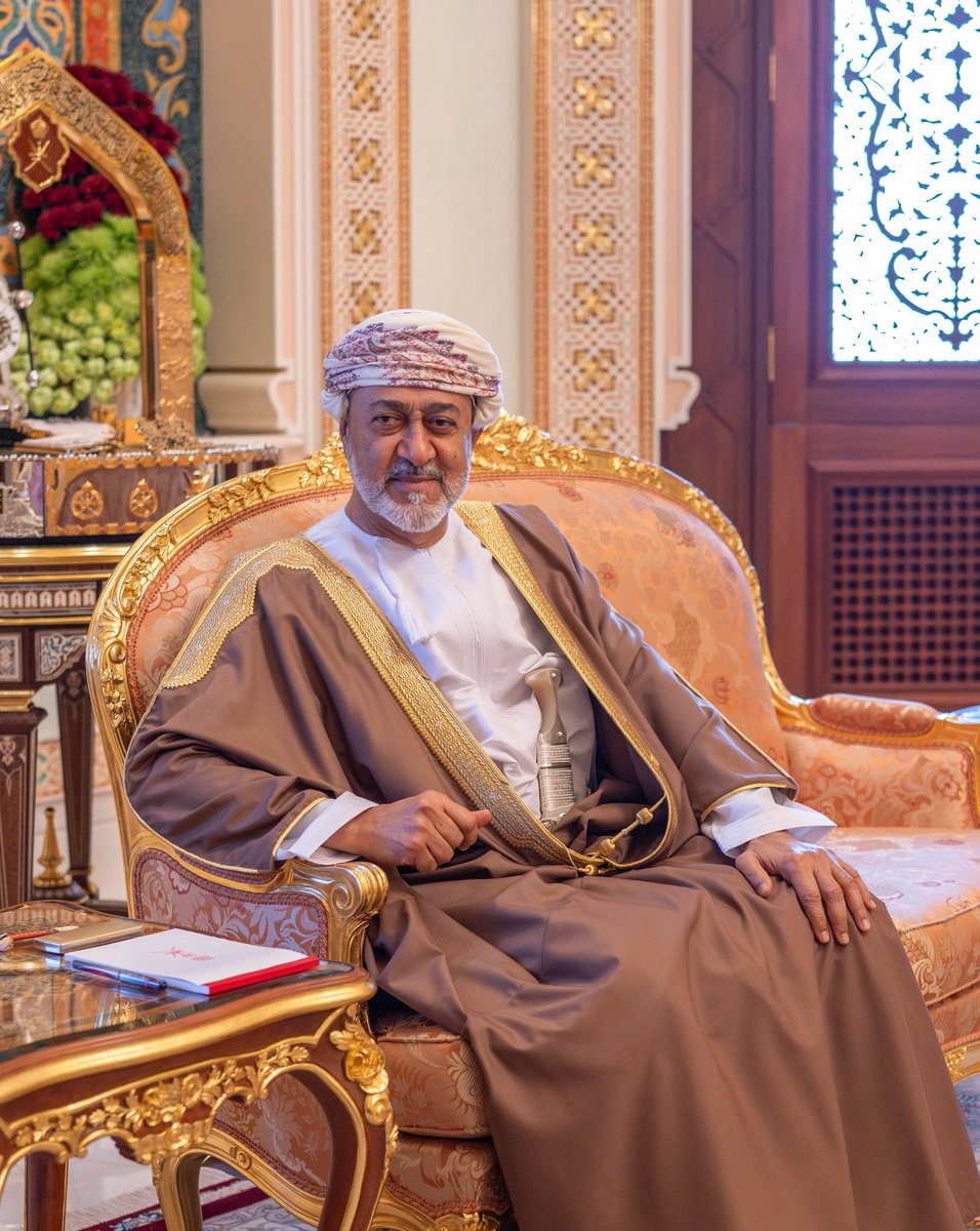 - 9 ديسمبر 2025وكان حضرةُ صاحبِ الجلالةِ السُّلطان هيثم بن طارق المعظّم /حفظهُ اللهُ ورعاهُ/ في مقدّمة المُستقبلين والمُرحّبين بفخامةِ الرئيس عند سُلّم الطّائرةلدى وصوله، مُتمنّيًا له ولوفده المرافق زيارةً طيّبةً.
