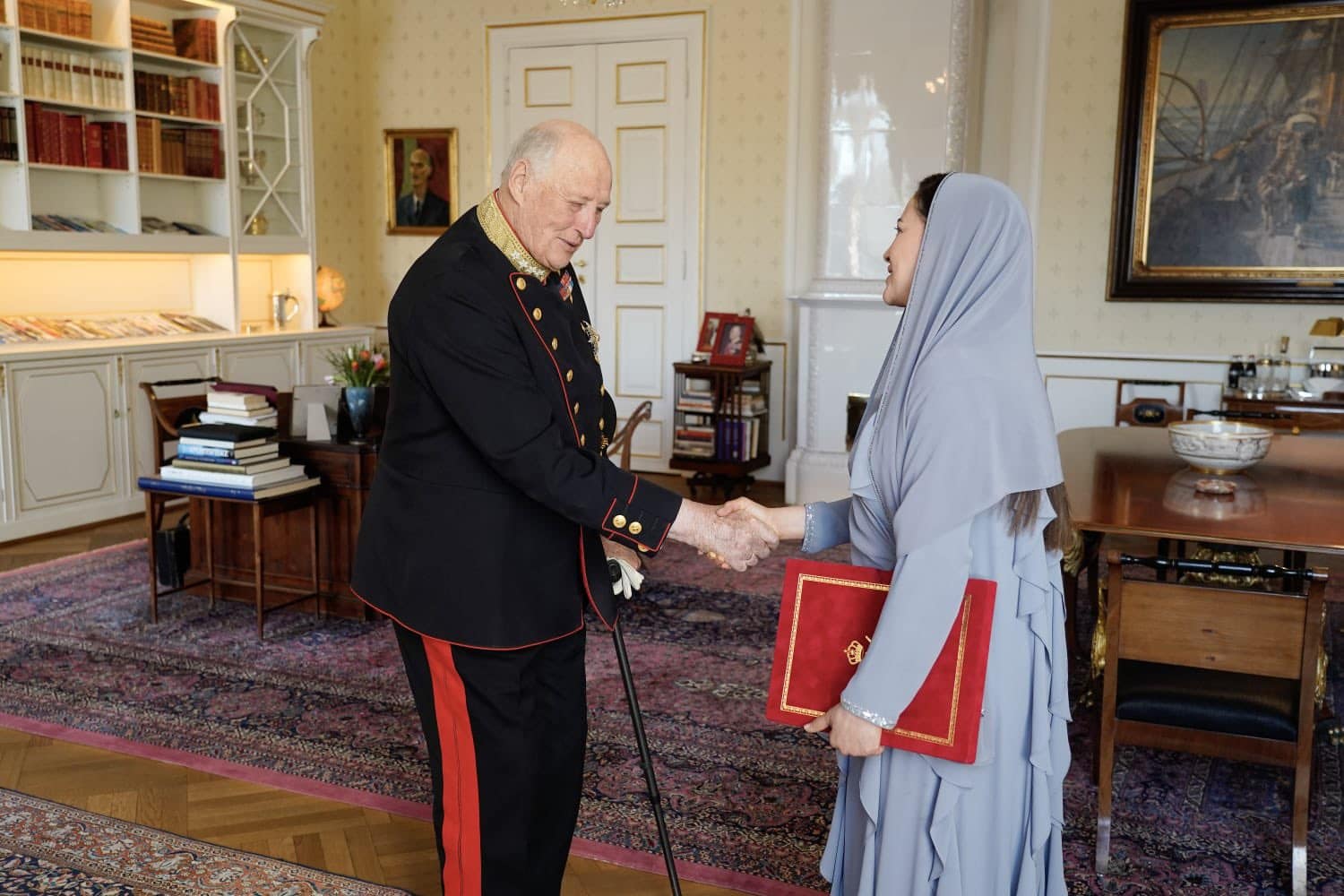 ونقلت سعادة السفيرة لصاحب الجلالة ملك النرويج تحيات حضرة صاحب الجلالة السُّلطان هيثم بن طارق المعظم -حفظه الله ورعاه- وتمنيات جلالته له بموفور الصحة والسعادة، ولحكومة وشعب النرويج بدوام التقدم والازدهار.
