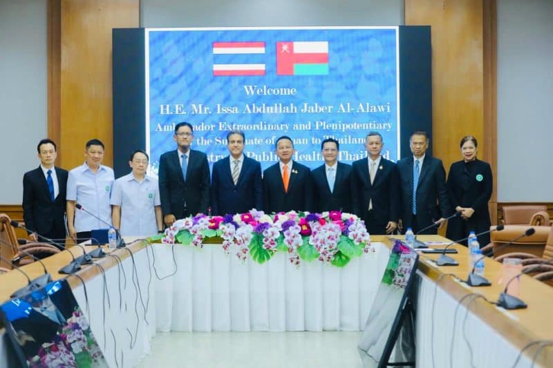 قام سعادة السفير عيسى بن عبدالله العلوي، سفير سلطنة عُمان المعتمد لدى مملكة تايلند، اليوم بزيارة معالي سومساك تيبسوتين، وزير الصحة العامة التايلندي. جرى خلال اللقاء استعراض سبل تعزيز العلاقات الثنائية بين سلطنة عُمان ومملكة تايلند، والتأكيد على أهمية تطوير التعاون المشترك في المجالات الصحية.