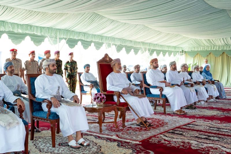 On arrival, His Majesty received the Minister of Culture, Sports and Youth, His Highness Sayyid Theyazin bin Haitham Al Said, Chairman of the Founding Committee of the Oman Cultural Complex Project, and Dr Hamad bin Muhammad Al Dhawayani, Chairman of the National Records and Archives Authority.