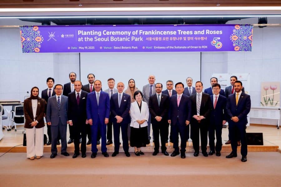 The Embassy of the Sultanate of Oman in the Republic of Korea organised a special event to plant an Omani frankincense tree, along with the Sultan Qaboos flower, the Sultan Haitham bin Tarik flower, and the flower of Her Highness the Honourable Lady Assayida Ahd Abdullah Hamed Al Busaidi, spouse of the Sultan, at the Seoul Botanic Park. The event forms …