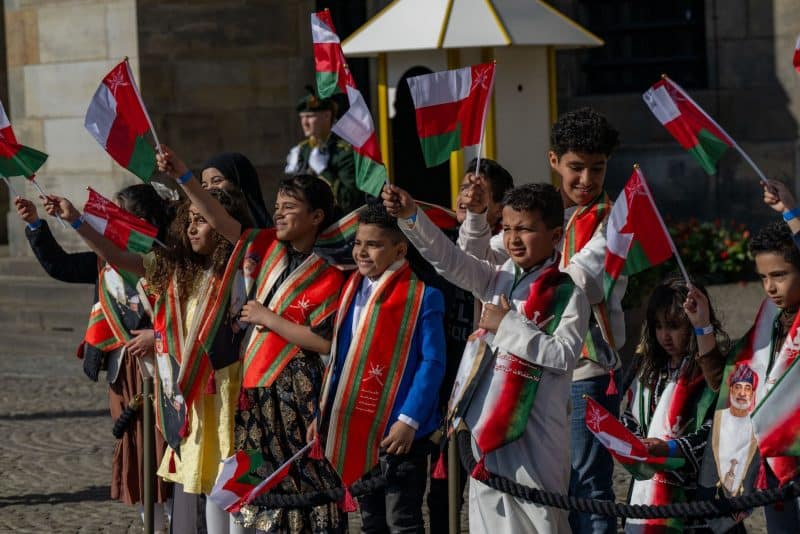 After that His Majesty the Sultan was welcomed by a group of young Omanis studying in the Netherlands, and by families of the staff of the Omani Embassy in the Netherlands..