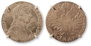 The Marie Therese coins are silver bullion trade coins first minted in 1741 and named after Empress Maria Theresa, who ruled Austria, Hungary, and Bohemia from 1740 to 1780. These coins were melted down and recycled by Omanis to make khanjars.